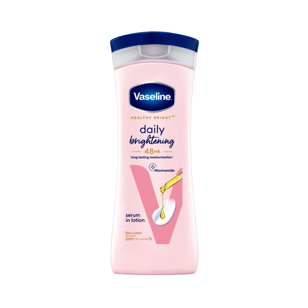 Unlock visibly brighter, fairer, and more evenly-toned skin with Vaseline Healthy Bright Lotion 200ml, now conveniently available in Bangladesh at Pink Flash BD. This advanced daily moisturizer is specifically designed for those seeking a radiant, luminous complexion. Enriched with Pro-Vitamin B3 (Niacinamide) and a touch of SPF 10 protection, it goes beyond ordinary hydration to actively improve skin clarity, reduce dullness, and shield your skin from everyday sun exposure that can cause darkening.